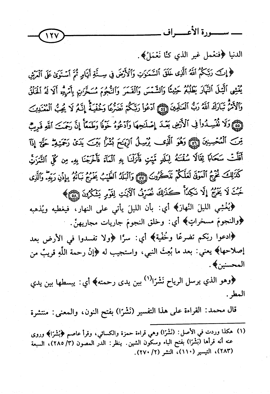 سُورَة الْأَعْرَاف من الْآيَة (54) إِلَى الْآيَة (58).