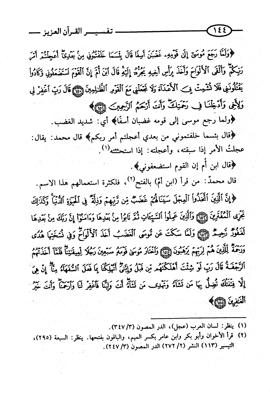 سُورَة الْأَعْرَاف من الْآيَة (150) إِلَى الْآيَة (151).