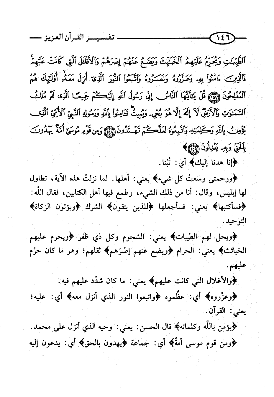 {وعزروه} أَيْ: عَظَّمُوهُ {وَاتَّبَعُوا النُّورَ الَّذِي أنزل مَعَه} أَي: عَلَيْهِ؛ يَعْنِي: الْقُرْآن.
