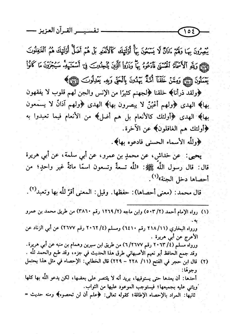 قَالَ رَسُولَ اللَّهِ صَلَّى اللَّهُ عَلَيْهِ وَسَلَّمَ: " لِلَّهِ تسعةٌ وَتِسْعُونَ اسْمًا مِائَةٌ غَيْرُ واحدٍ؛ مَنْ أَحْصَاهَا دَخَلَ الْجَنَّةَ ".