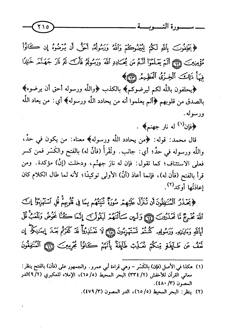 سُورَة التَّوْبَة من الْآيَة (62) إِلَى الْآيَة (63).