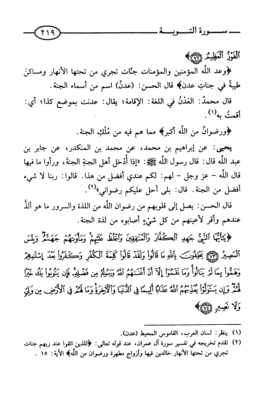 سُورَة التَّوْبَة من الْآيَة (73) إِلَى الْآيَة (74).