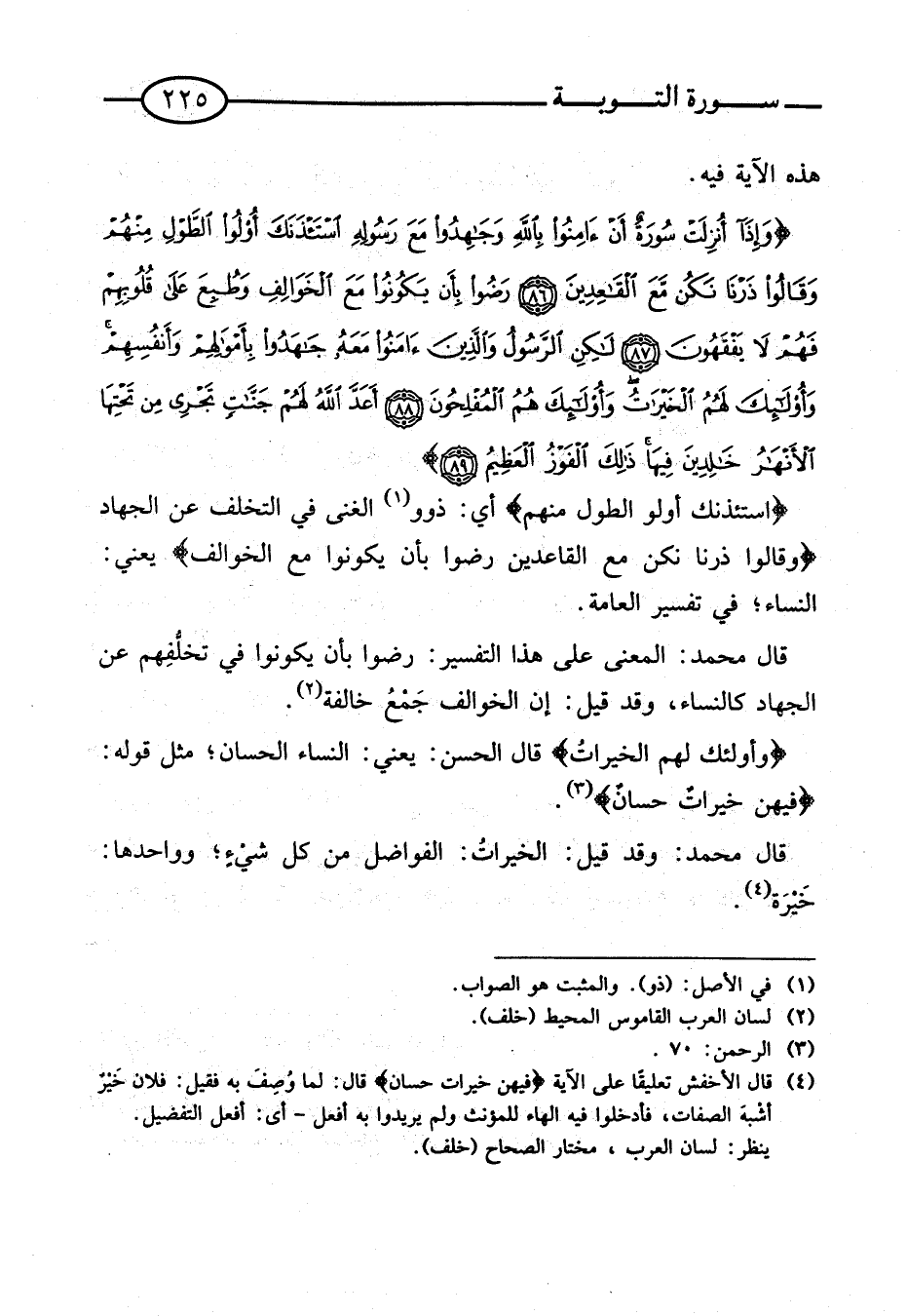 سُورَة التَّوْبَة من الْآيَة (86) إِلَى الْآيَة (89).