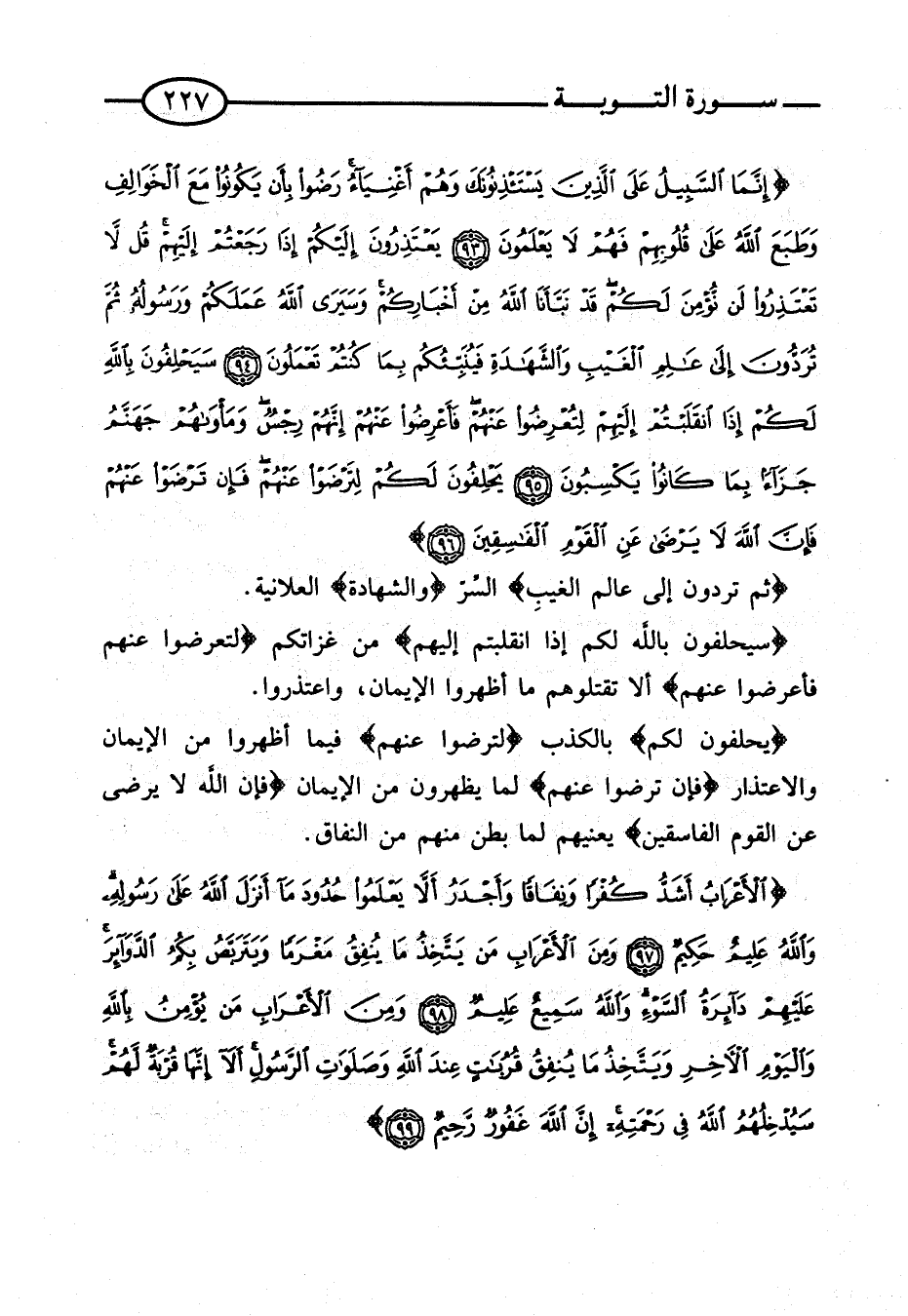 سُورَة التَّوْبَة من الْآيَة (93) إِلَى الْآيَة (96).