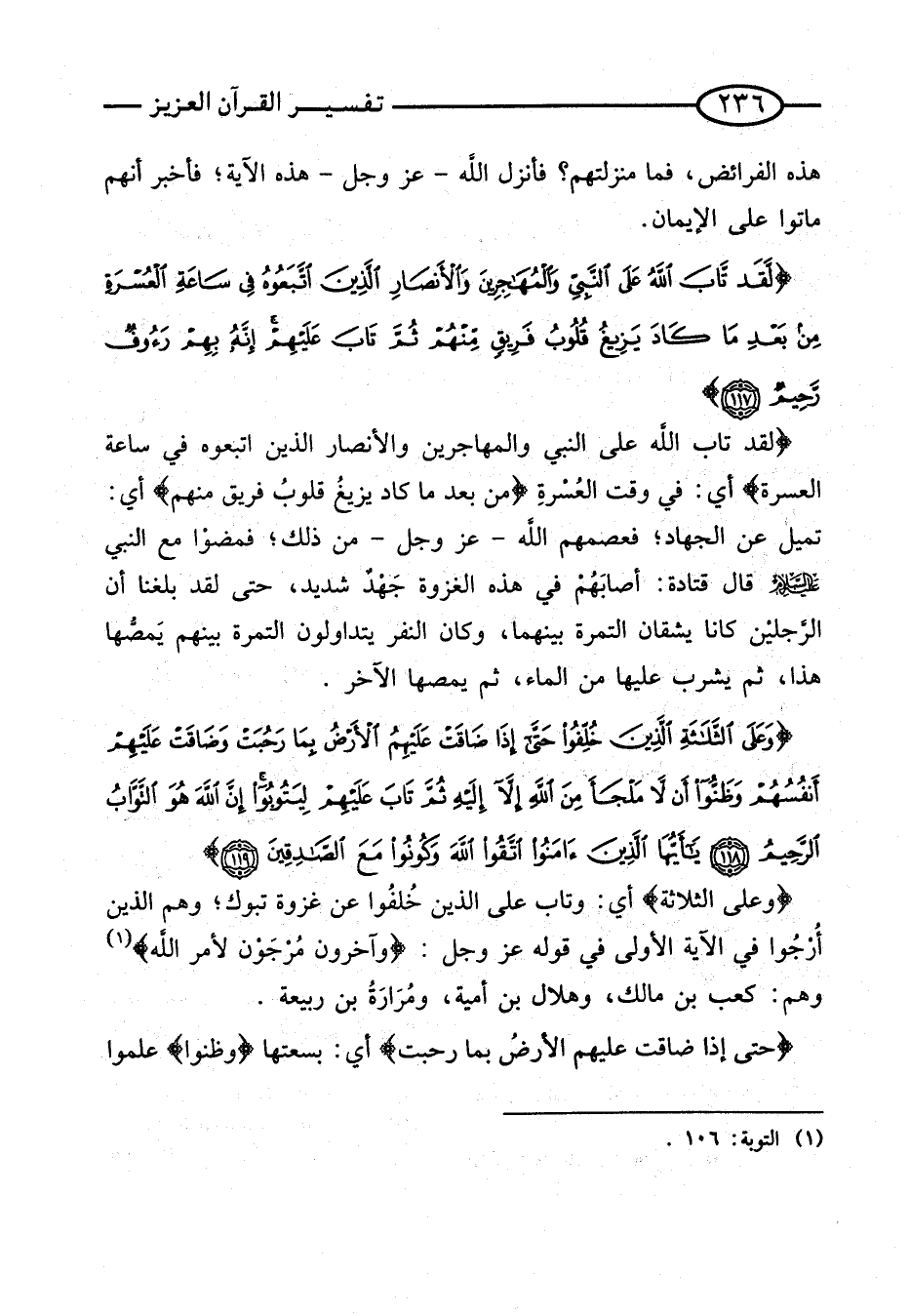 سُورَة التَّوْبَة من الْآيَة (117) فَقَط.