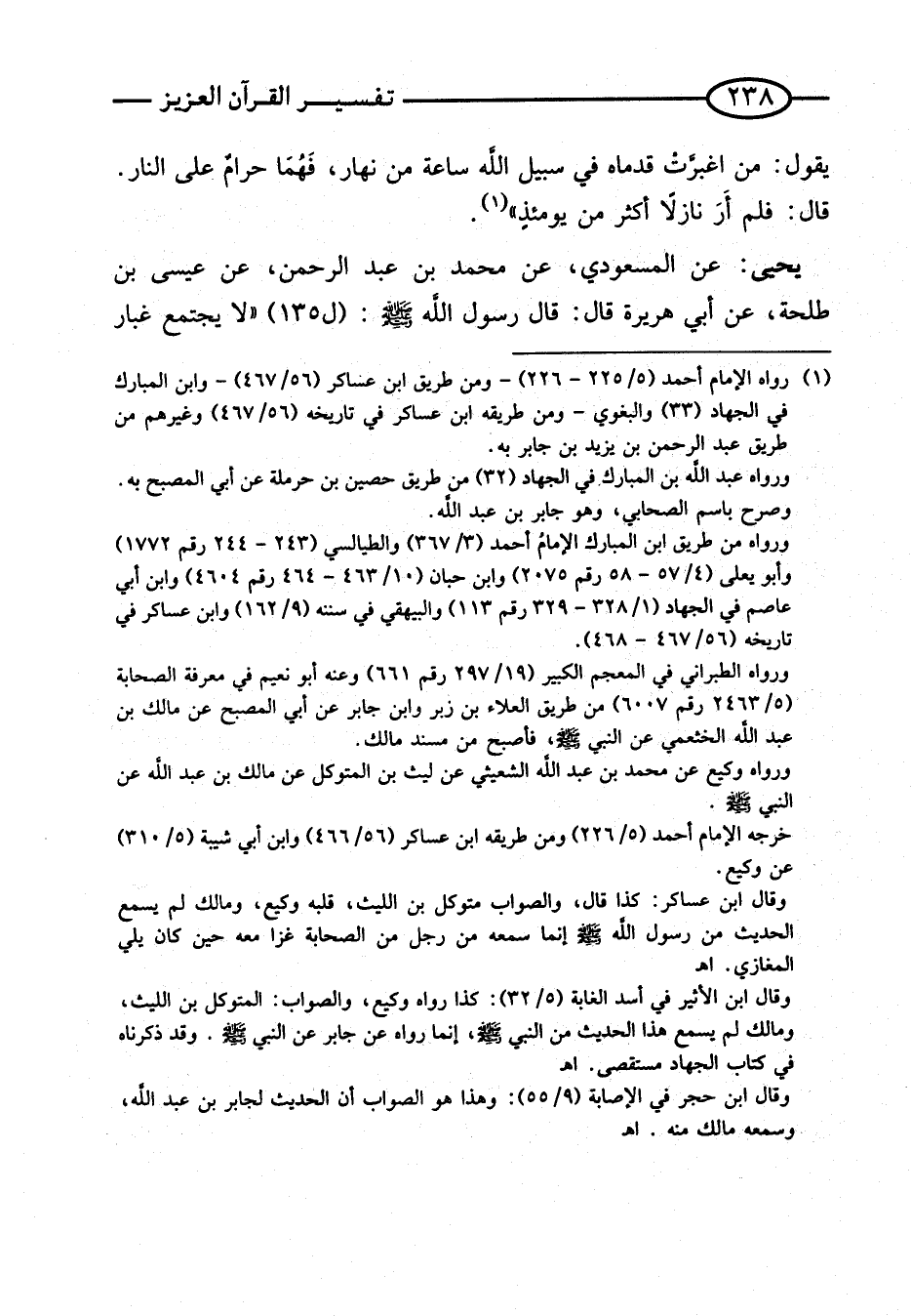 يَقُولُ: مَنِ اغْبَرَّتْ قَدَمَاهُ فِي سَبِيلِ اللَّهِ سَاعَةً مِنْ نَهَارٍ، فَهُمَا حرامٌ عَلَى النَّارِ.