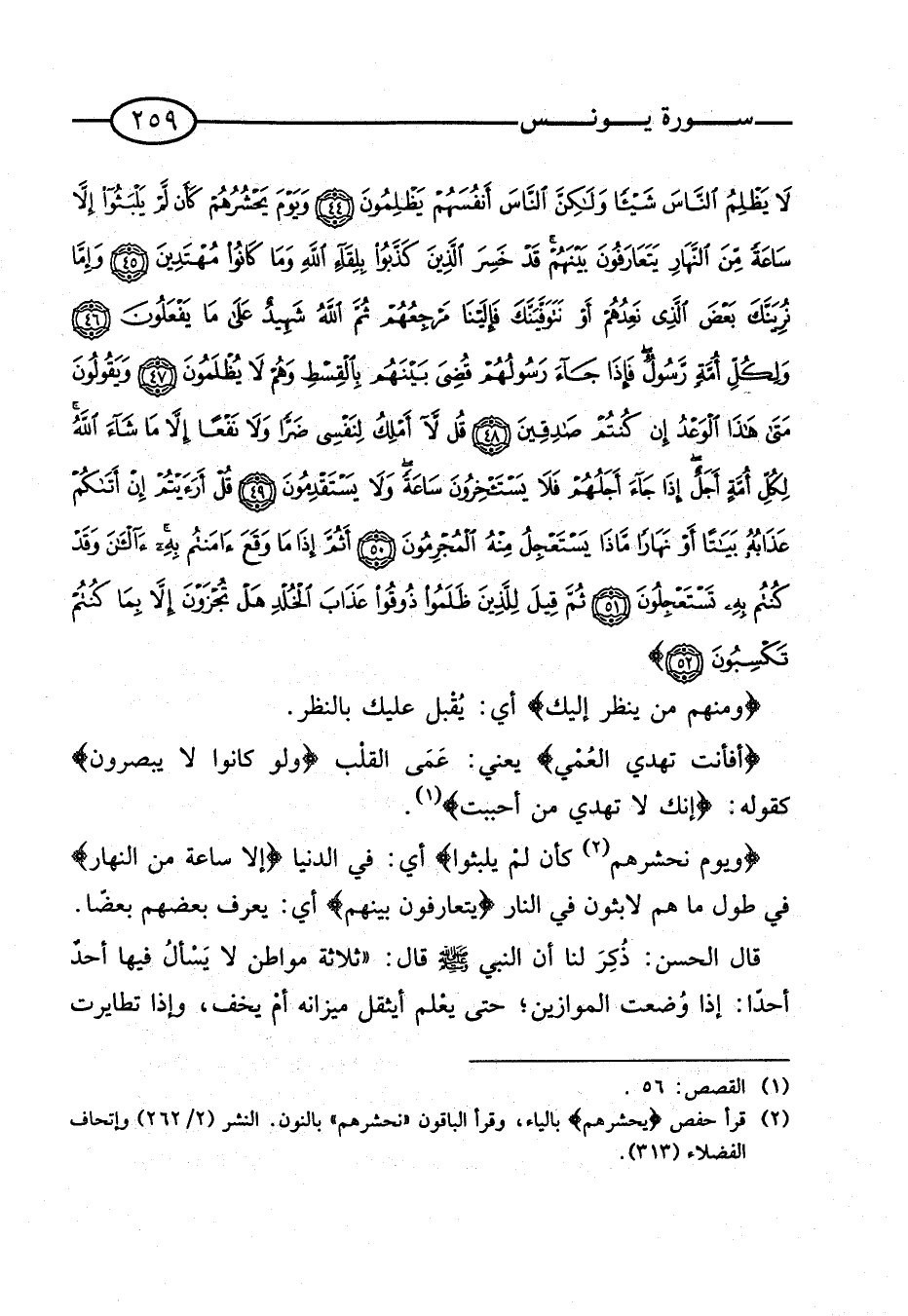 {وَيَوْم نحشرهم كَأَن لم يَلْبَثُوا} أَيْ: فِي الدُّنْيَا {إِلا سَاعَةً من النَّهَار} فِي طُوْلِ مَا هُمْ لابِثُونَ فِي النَّار {يَتَعَارَفُونَ بَينهم} أَيْ: يَعْرِفُ بَعْضُهُمْ بَعْضًا.