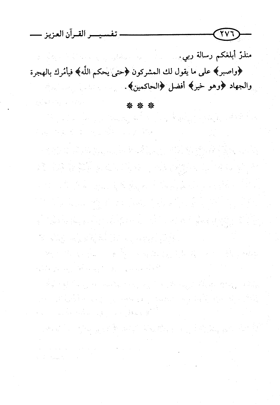 {واصبر} عَلَى مَا يَقُولُ لَكَ الْمُشْرِكُونَ {حَتَّى يحكم الله} فَيَأْمُرَكَ بِالْهِجْرَةِ وَالْجِهَادِ {وَهُوَ خَيْرُ} أفضل {الْحَاكِمين}.