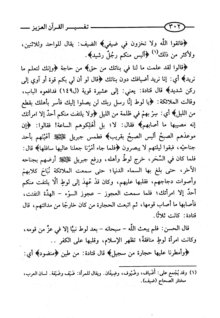 {فَاتَّقُوا اللَّهَ وَلا تُخْزُونِ فِي ضَيْفِي} الضَّيْفُ: يُقَالُ لِلْوَاحِدِ وَلِلاثْنَيْنِ، وَلأَكْثَرَ مِنْ ذَلِكَ {أَلَيْسَ مِنْكُمْ رجلٌ رَشِيدٌ}.