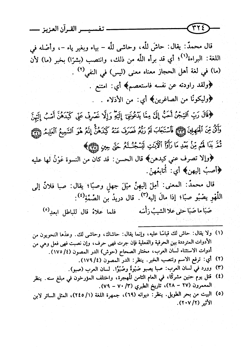 قَالَ محمدٌ: يُقَالُ: حَاشَ لِلَّهِ، وَحَاشَى لِلَّهِ - بِيَاءٍ وَبِغَيْرِ يَاءٍ -، وَأَصْلُهُ فِي اللُّغَةِ: الْبَرَاءَةُ؛ أَيْ قَدْ بَرَّأَهُ اللَّهُ مِنْ ذَلِكَ، وَانْتَصَبَ (بَشَرًا) بِخَبَرِ (مَا) لأَنَّ (مَا) فِي لُغَةِ أَهْلِ الْحِجَازِ مَعْنَاهُ مَعْنَى (لَيْسَ) فِي النَّفْيِ.