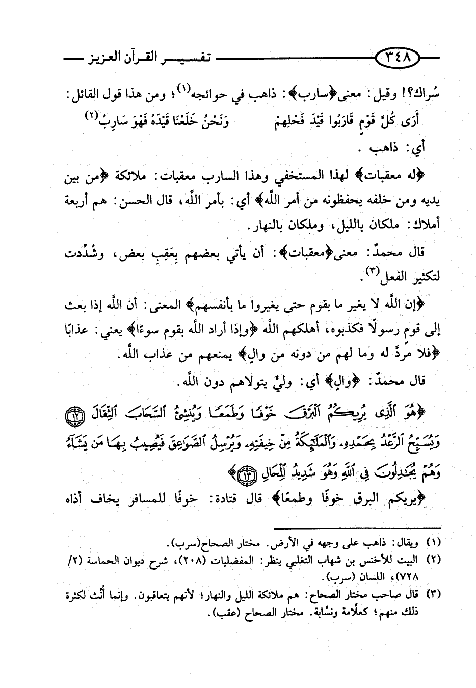 سراك؟! وَقيل: معنى {سارب}: ذَاهِبٌ فِي حَوَائِجِهِ؛ وَمِنْ هَذَا قَوْلُ الْقَائِلِ: