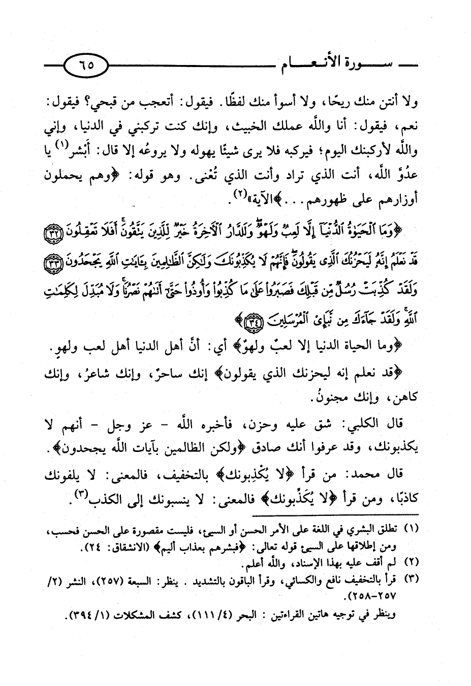 سُورَة الْأَنْعَام من الْآيَة (32) إِلَى الْآيَة (34).