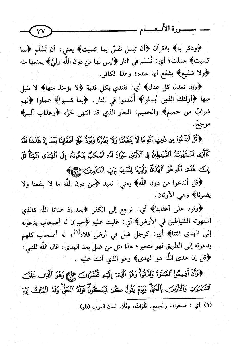 سُورَة الْأَنْعَام من الْآيَة (71) فَقَط.