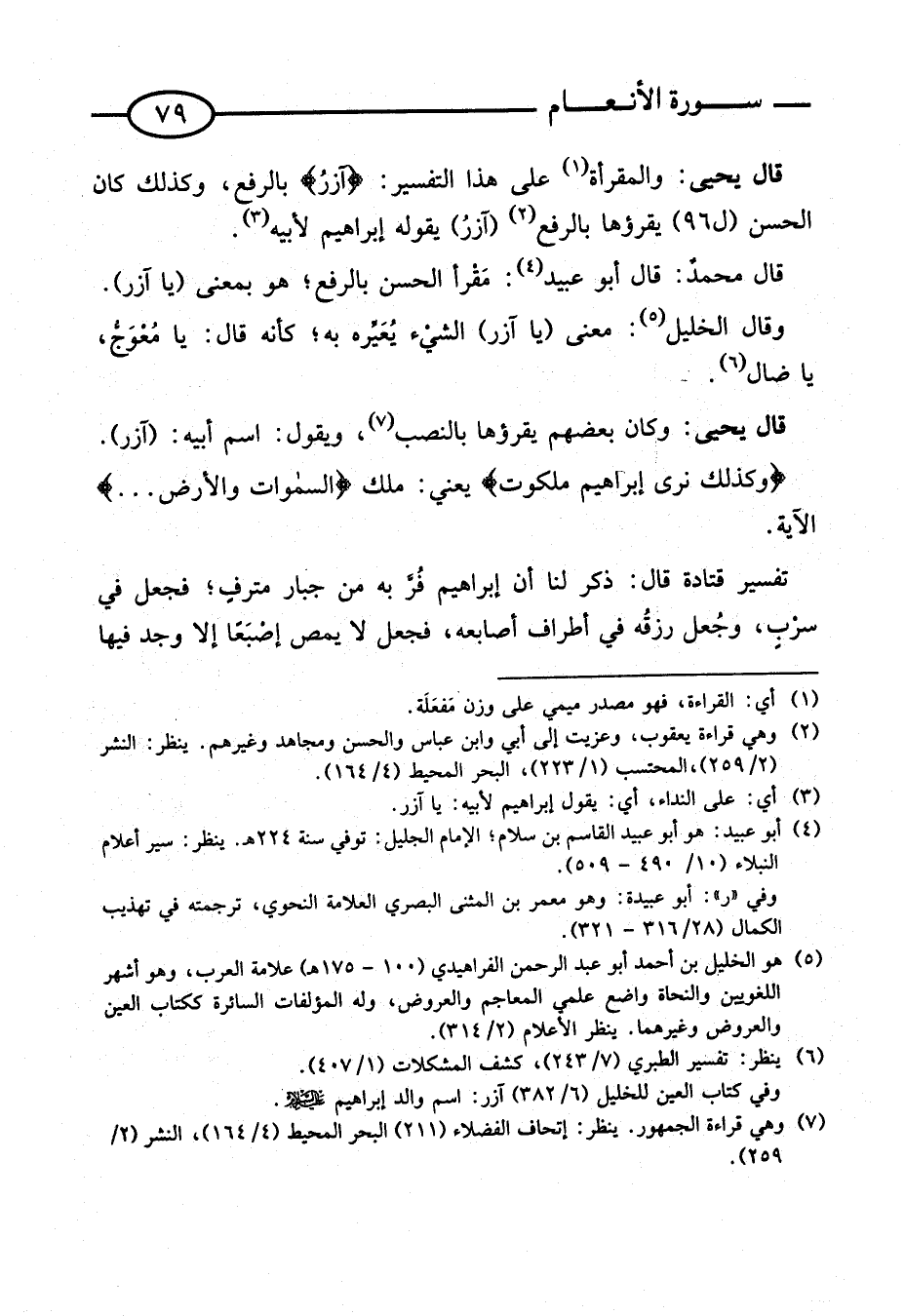 قَالَ يحيى: وَالْمَقْرَأَةُ عَلَى هَذَا التَّفْسِير: {آزر} بِالرَّفْع، وَكَذَلِكَ كَانَ الْحسن (ل 96) يَقْرَؤُهَا بِالرَّفْعِ (آزَرُ) يَقُولُهُ إِبْرَاهِيمُ لِأَبِيهِ.