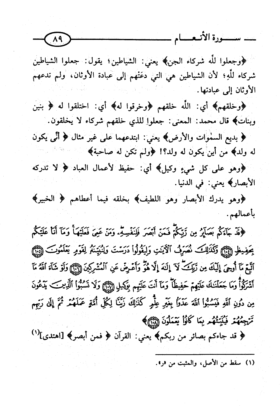 سُورَة الْأَنْعَام من الْآيَة (104) إِلَى الْآيَة (108).