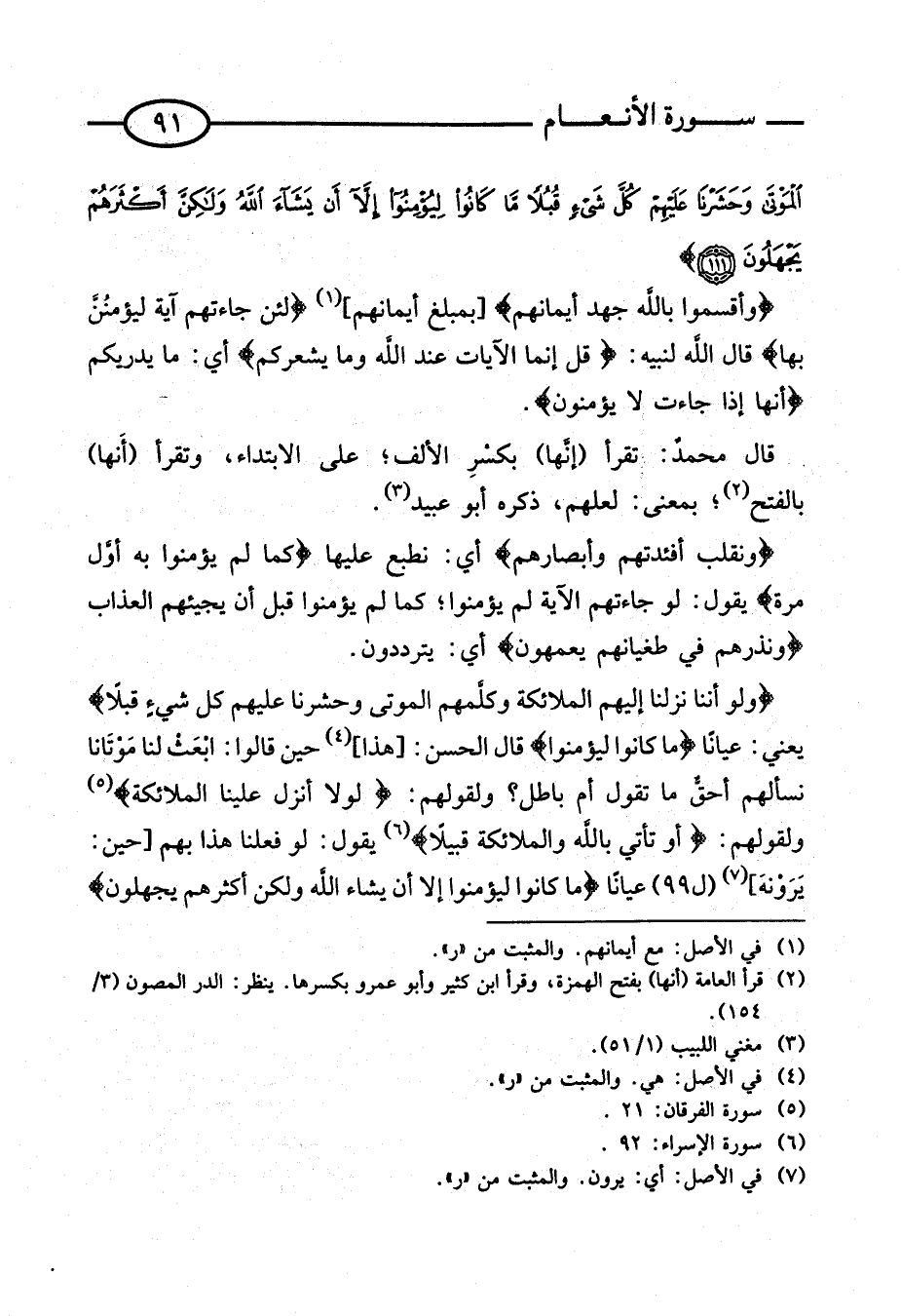 يَعْنِي: عَيَانًا {مَا كَانُوا لِيُؤْمِنُوا} قَالَ الْحَسَنُ: [هَذَا] حِينَ قَالُوا: ابْعَثْ لَنَا مَوْتَانَا نَسْأَلْهُمْ أحقٌّ مَا تَقُولُ أَمْ بَاطِلٌ؟ وَلِقَوْلِهِمْ: {لَوْلَا أنزل علينا الْمَلَائِكَة} وَلِقَوْلِهِمْ: {أَوْ تَأْتِيَ بِاللَّهِ وَالْمَلائِكَةِ قبيلا} يَقُولُ: لَوْ فَعَلْنَا هَذَا بِهِمْ [حِين: يرونه] (ل 99) عِيَانًا {مَا كَانُوا لِيُؤْمِنُوا إِلا أَنْ يَشَاءَ اللَّهُ وَلَكِنَّ أَكْثَرَهُمْ يجهلون}