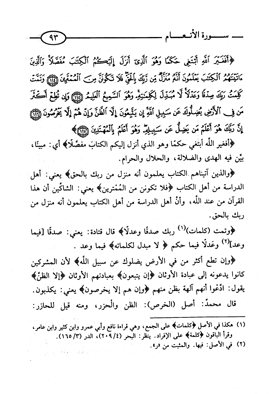 سُورَة الْأَنْعَام من الْآيَة (114) إِلَى الْآيَة (117).