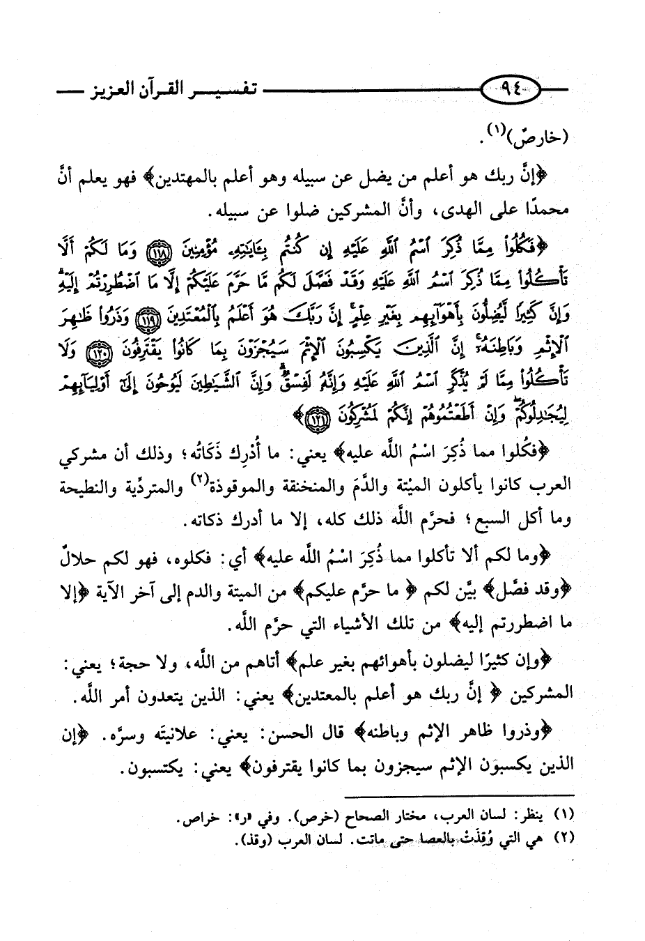 سُورَة الْأَنْعَام من الْآيَة (118) إِلَى الْآيَة (121).