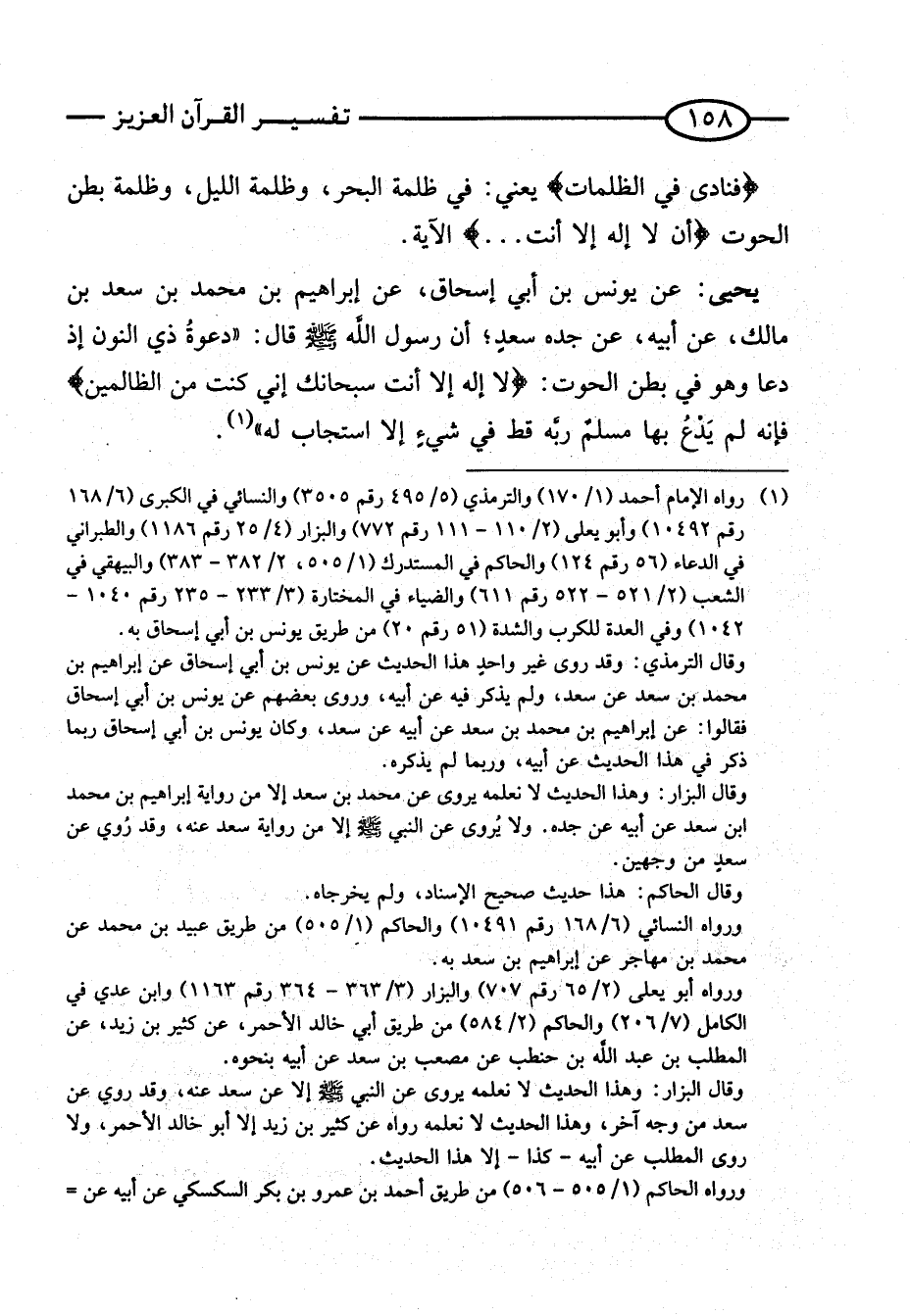 يَحْيَى: عَنْ يُونُسَ بْنِ أَبِي إِسْحَاقَ، عَنْ إِبْرَاهِيمَ بْنِ مُحَمَّدِ بْنِ سَعْدِ بْنِ مَالِكٍ، عَنْ أَبِيهِ، عَنْ جَدِّهِ سَعْدٍ؛ أَنَّ رَسُولَ اللَّهِ صَلَّى اللَّهُ عَلَيْهِ وَسَلَّمَ قَالَ: " دَعْوةُ ذِي النُّونِ إِذْ دَعَا وَهُوَ فِي بَطْنِ الْحُوتِ: {لَا إِلَهَ إِلا أَنْتَ سُبْحَانَكَ إِنِّي كُنْتُ مِنَ الظَّالِمين} فَإِنَّهُ لَمْ يَدْعُ بِهَا مُسْلِمٌ رَبَّهُ قَطٌّ فِي شَيْءٍ إِلَّا اسْتَجَابَ لَهُ ".