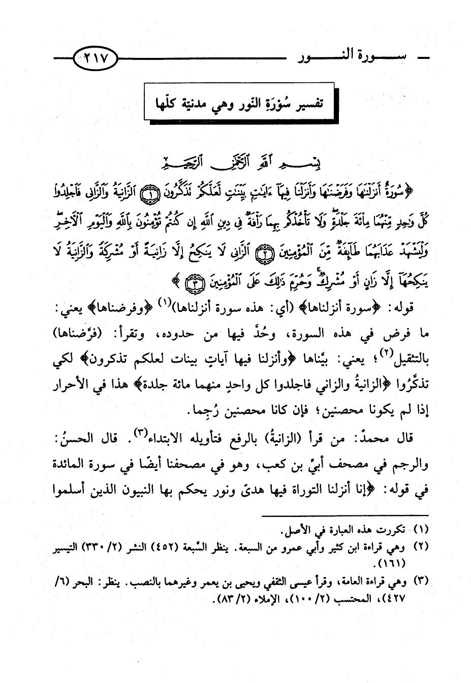 تَفْسِيرُ سُورَةِ النُّورِ وَهِيَ مَدَنِيَّةٌ كلهَا