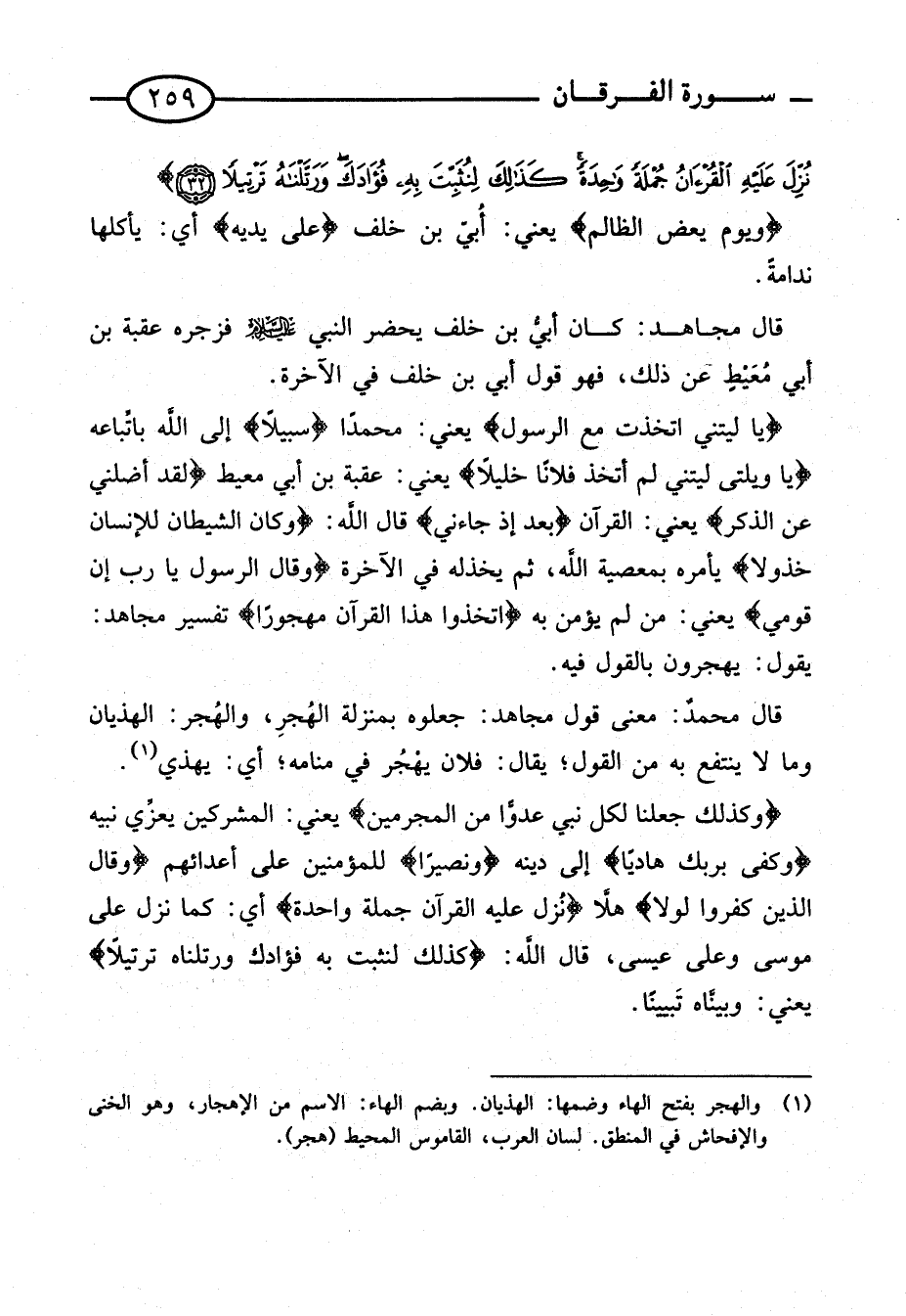 {وَقَالَ الرَّسُولُ يَا رَبِّ إِنَّ قومِي} يَعْنِي: مَنْ لَمْ يُؤْمِنْ بِهِ {اتَّخذُوا هَذَا الْقُرْآن مَهْجُورًا} تَفْسِيرُ مُجَاهِدٍ: يَقُولُ: يَهْجُرُونَ بِالْقَوْلِ فِيهِ.