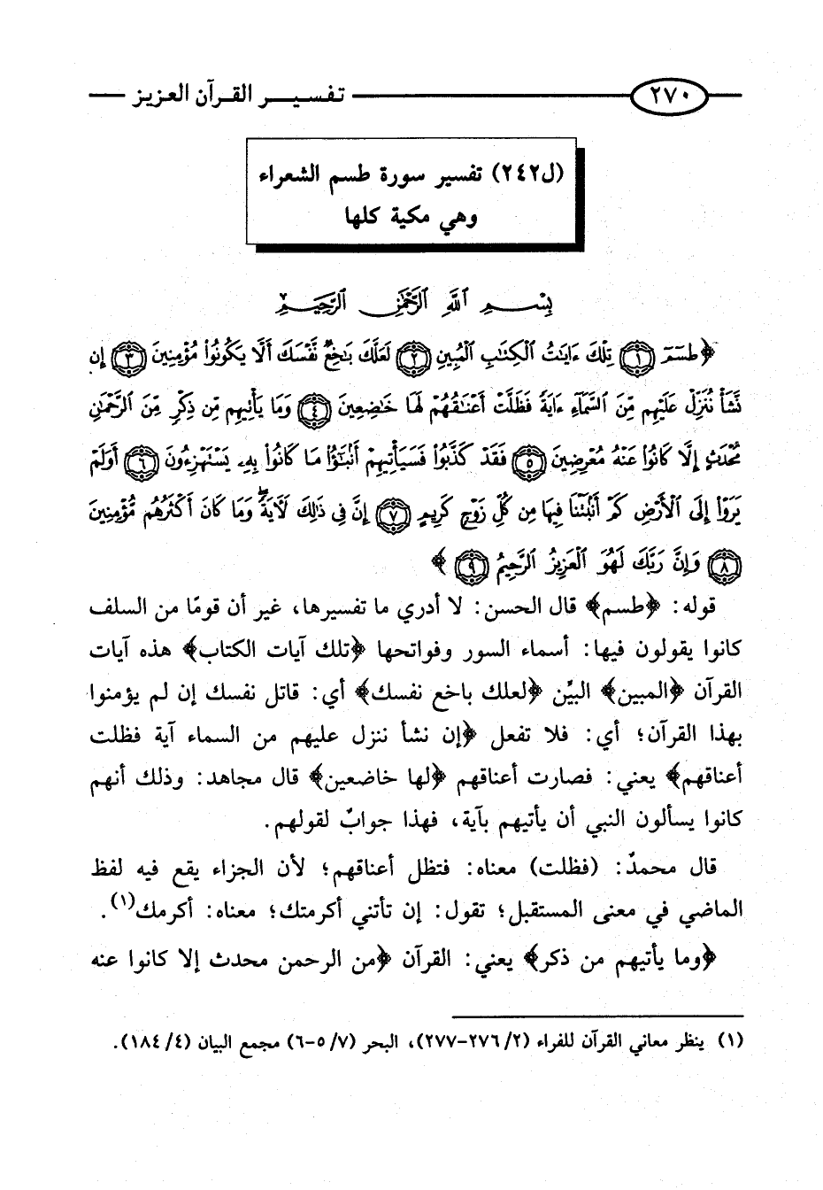تَفْسِيرُ سُورَةِ طسم الشُّعَرَاءِ وَهِيَ مَكِّيَّة كلهَا