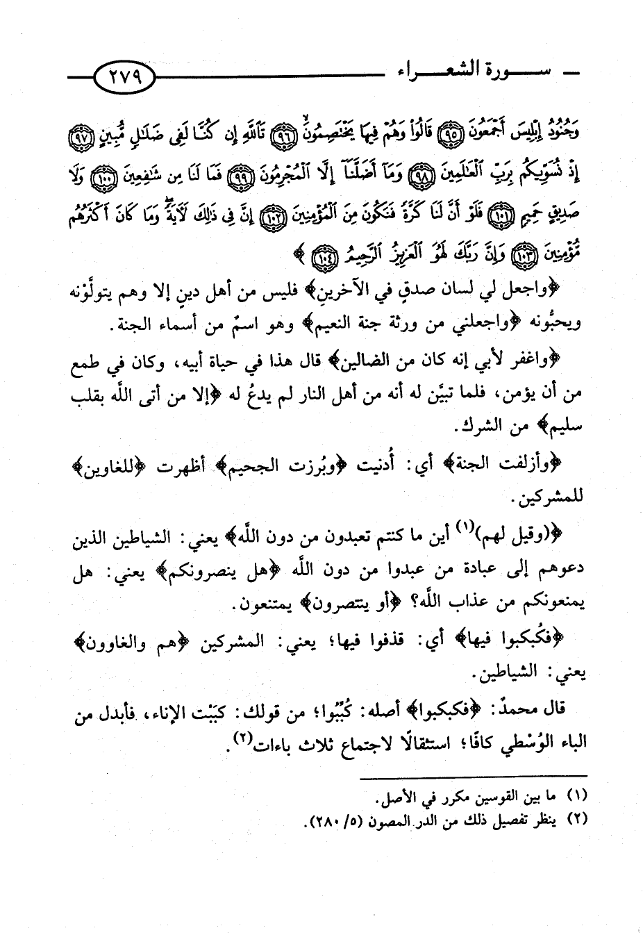 {فكبكبوا فِيهَا} أَيْ: قُذِفُوا فِيهَا؛ يَعْنِي: الْمُشْرِكِينَ {هم والغاوون} يَعْنِي: الشَّيَاطِينَ.