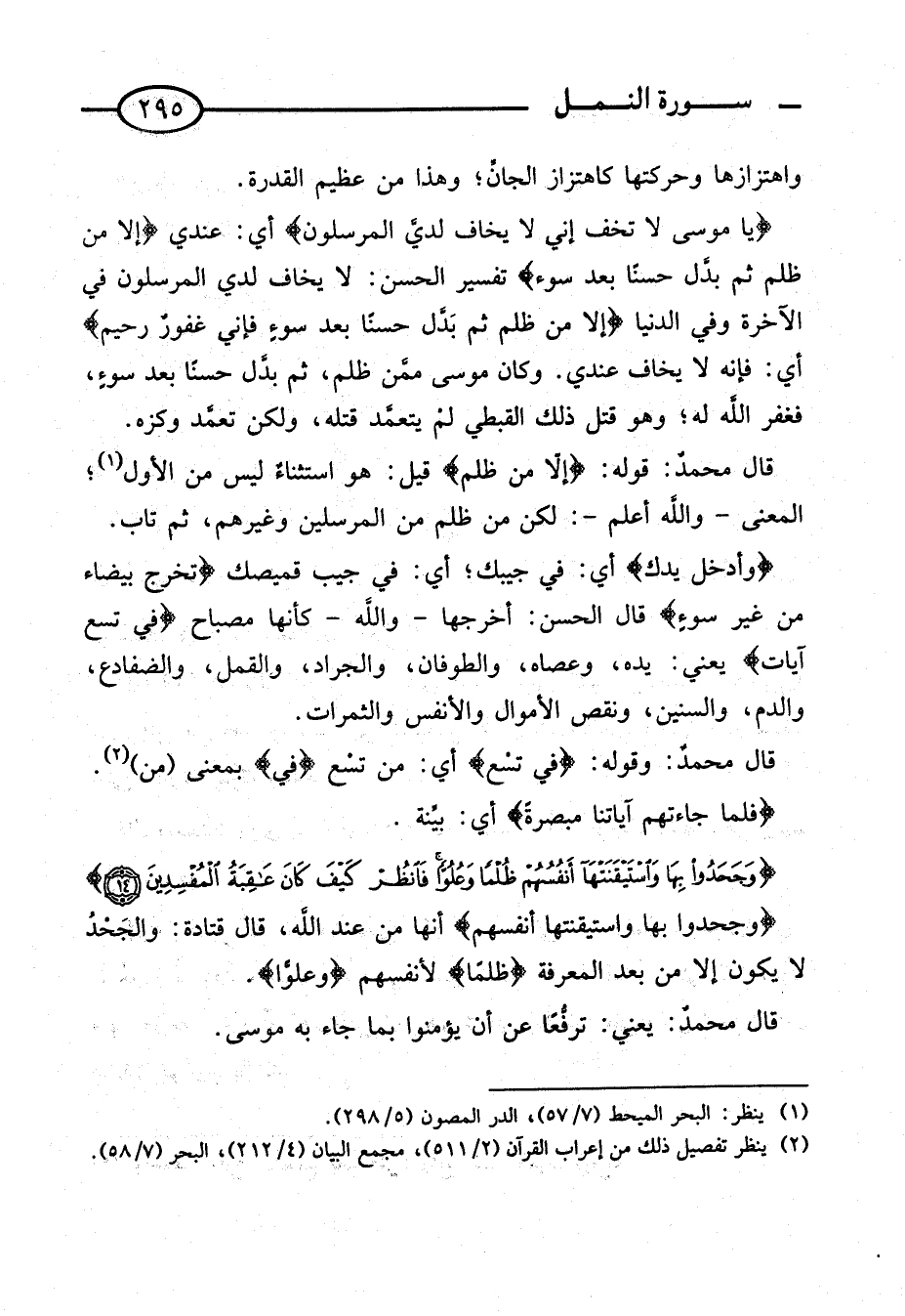 قَالَ مُحَمَّدٌ: قَوْلُهُ: {إِلَّا من ظلم} قِيلَ: هُوَ اسْتِثْنَاءٌ لَيْسَ مِنَ الْأَوَّلِ؛ الْمَعْنَى - وَاللَّهُ أَعْلَمُ -: لَكِنْ مَنْ ظَلَمَ مِنَ الْمُرْسَلِينَ وَغَيْرِهِمْ، ثمَّ تَابَ.