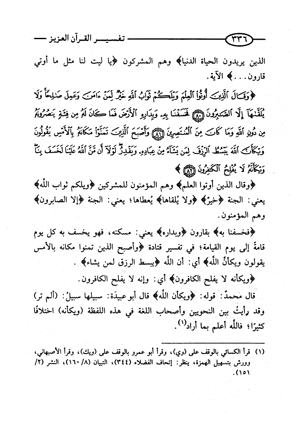 قَالَ مُحَمَّدٌ: قَوْلُهُ: {وَيْكَأَنَّ اللَّهَ} قَالَ أَبُو عُبَيْدَةَ: سَبِيلُهَا سَبِيلُ: (أَلَمْ تَرَ) وَقَدْ رَأَيْتُ بَيْنَ النَّحْوِيِّينَ وَأَصْحَابِ اللُّغَةِ فِي هَذِهِ اللَّفْظَة (ويكأنه) اخْتِلَافًا كَثِيرًا؛ فَاللَّهُ أَعْلَمُ بِمَا أَرَادَ.