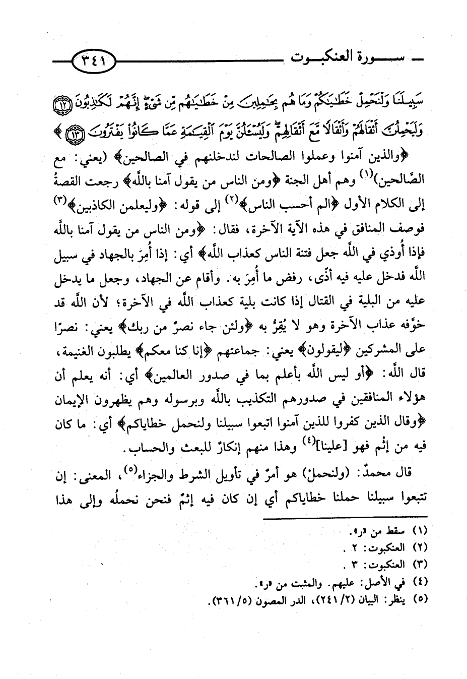 {وَمِنَ النَّاسِ مَنْ يَقُولُ آمَنَّا بِاللَّه} رَجَعَتِ الْقِصَّةُ إِلَى الْكَلَامِ الْأَوَّلِ {الم أَحَسِبَ النَّاسُ} إِلَى قَوْلِهِ: {وليعلمن الْكَاذِبين} فَوَصَفَ الْمُنَافِقَ فِي هَذِهِ الْآيَةِ الْآخِرَةِ، فَقَالَ: {وَمِنَ النَّاسِ مَنْ يَقُولُ آمَنَّا بِاللَّهِ فَإِذَا أُوذِيَ فِي اللَّهِ جَعَلَ فِتْنَةَ النَّاسِ كعذاب الله} أَيْ: إِذَا أُمِرَ بِالْجِهَادِ فِي سَبِيلِ اللَّهِ فَدَخَلَ عَلَيْهِ فِيهِ أَذًى، رَفَضَ مَا أُمِرَ بِهِ. وَأَقَامَ عَنِ الْجِهَادِ، وَجَعَلَ مَا يَدْخُلُ عَلَيْهِ مِنَ الْبَلِيَّةِ فِي الْقِتَالِ إِذَا كَانَتْ بَلِيَّةً كَعَذَابِ اللَّهِ فِي الْآخِرَةِ؛ لِأَنَّ اللَّهَ قَدْ خَوَّفَهُ عَذَابَ الْآخِرَةِ وَهُوَ لَا يُقِرُّ بِهِ {وَلَئِنْ جَاءَ نصر من رَبك} يَعْنِي: نصرا على الْمُشْركين {ليقولون} يَعْنِي: جَمَاعَتَهُمْ {إِنَّا كُنَّا مَعَكُمْ} يطْلبُونَ الْغَنِيمَة، قَالَ الله: {أَو لَيْسَ اللَّهُ بِأَعْلَمَ بِمَا فِي صُدُورِ الْعَالمين} أَيْ: أَنَّهُ يَعْلَمُ أَنَّ هَؤُلَاءِ الْمُنَافِقِينَ فِي صُدُورِهِمُ التَّكْذِيبُ بِاللَّهِ وبرسوله وهم يظهرون الْإِيمَان