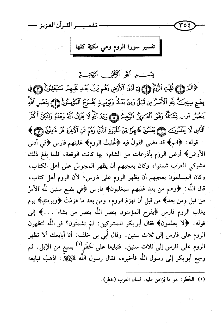 تَفْسِيرُ سُوْرَةِ الرُّوْمِ وَهِيَ مَكِيَّةٌ كلهَا