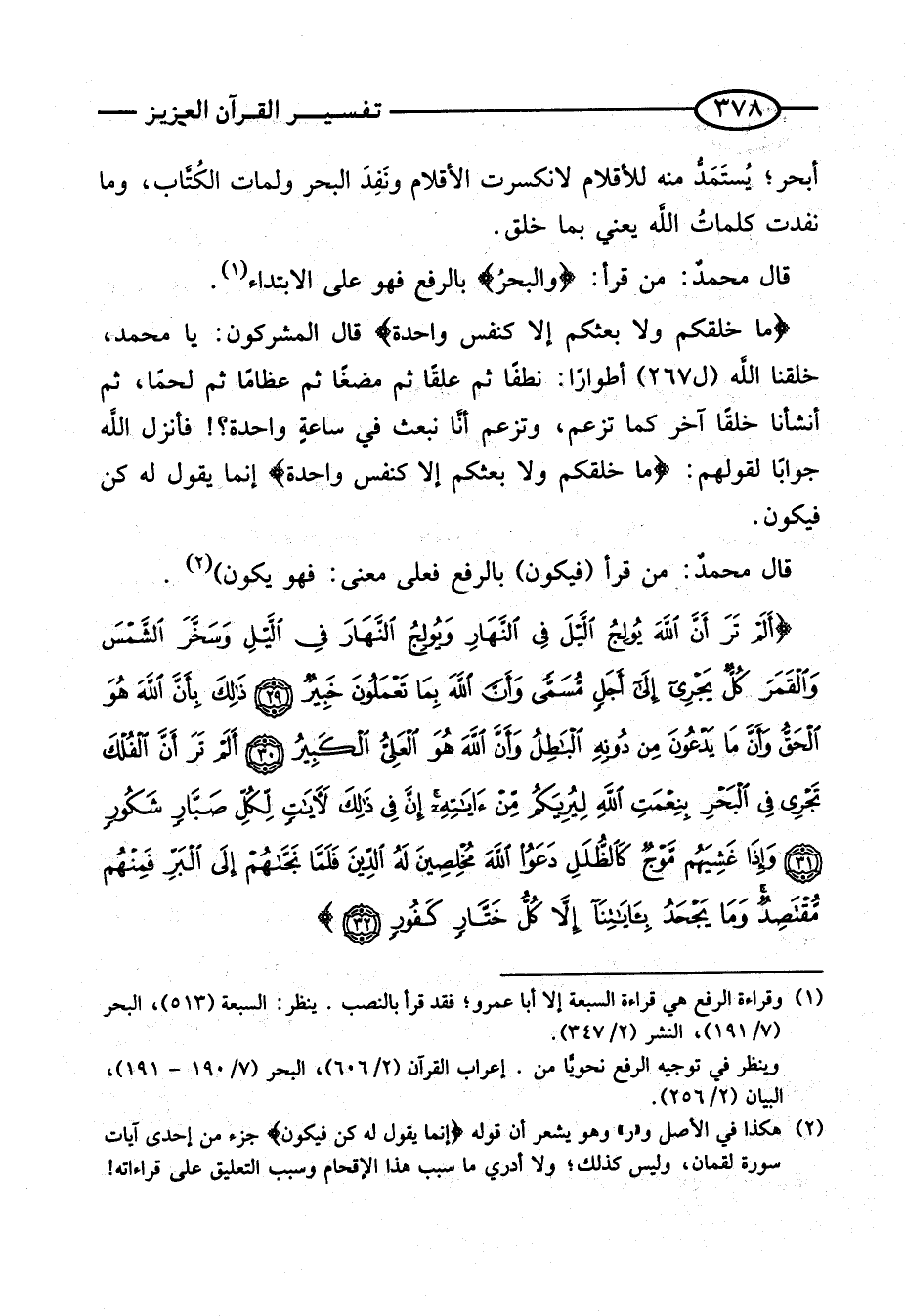 قَالَ مُحَمَّدٌ: مَنْ قَرَأَ: {وَالْبَحْر} بِالرَّفْع فَهُوَ على الِابْتِدَاء.