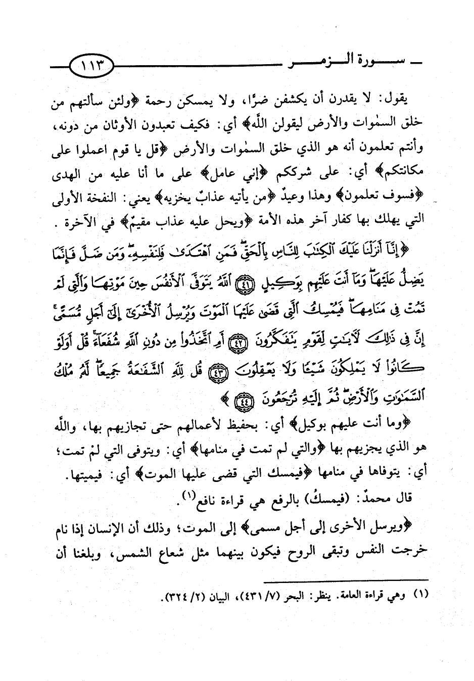 تَفْسِير سُورَة الزمر من الْآيَة 41 إِلَى آيَة 44.