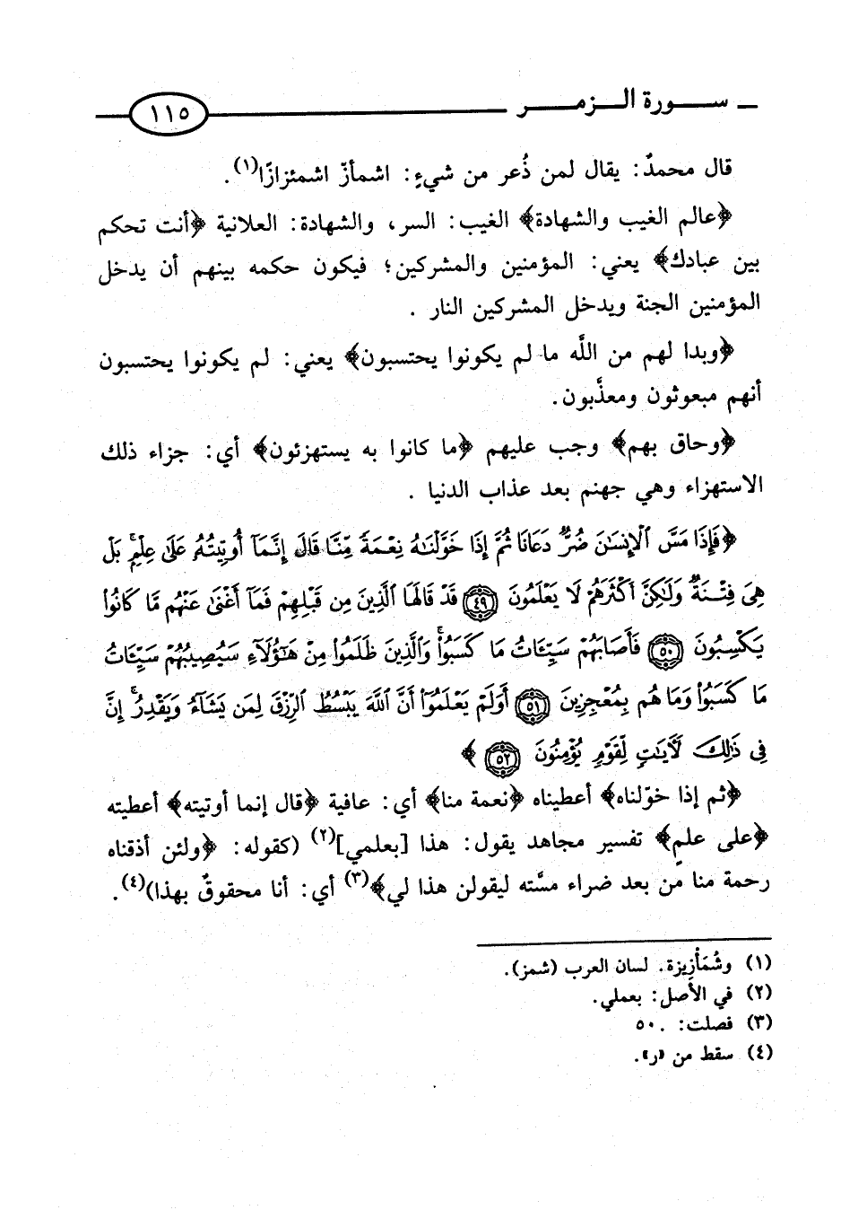تَفْسِير سُورَة الزمر من الْآيَة 49 إِلَى آيَة 52.