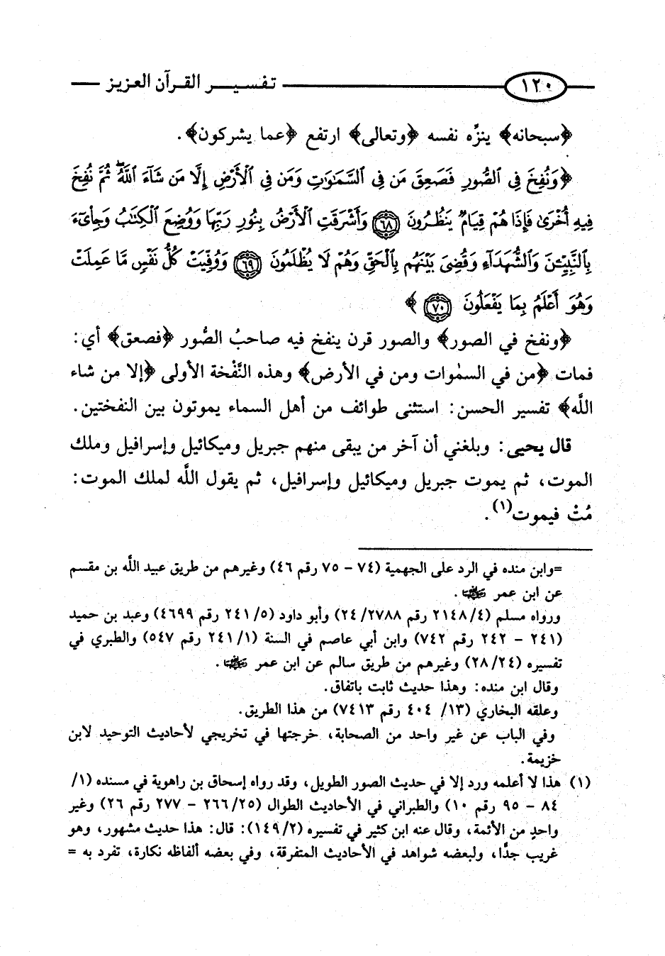 تَفْسِير سُورَة الزمر من الْآيَة 68 إِلَى آيَة 70