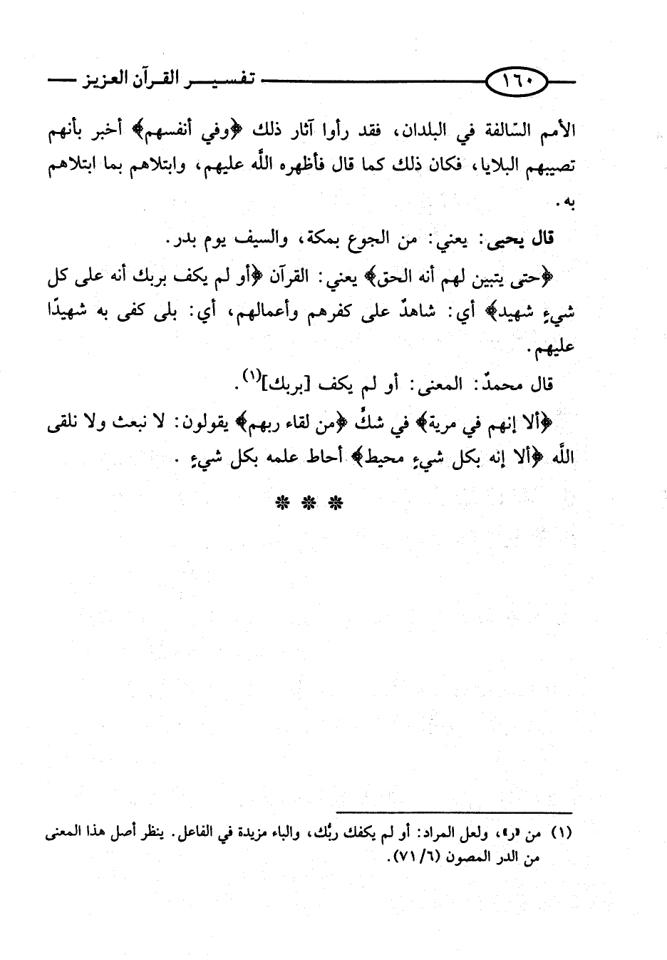 قَالَ مُحَمَّد: الْمَعْنى: أَو لم يكف [بِرَبِّك].