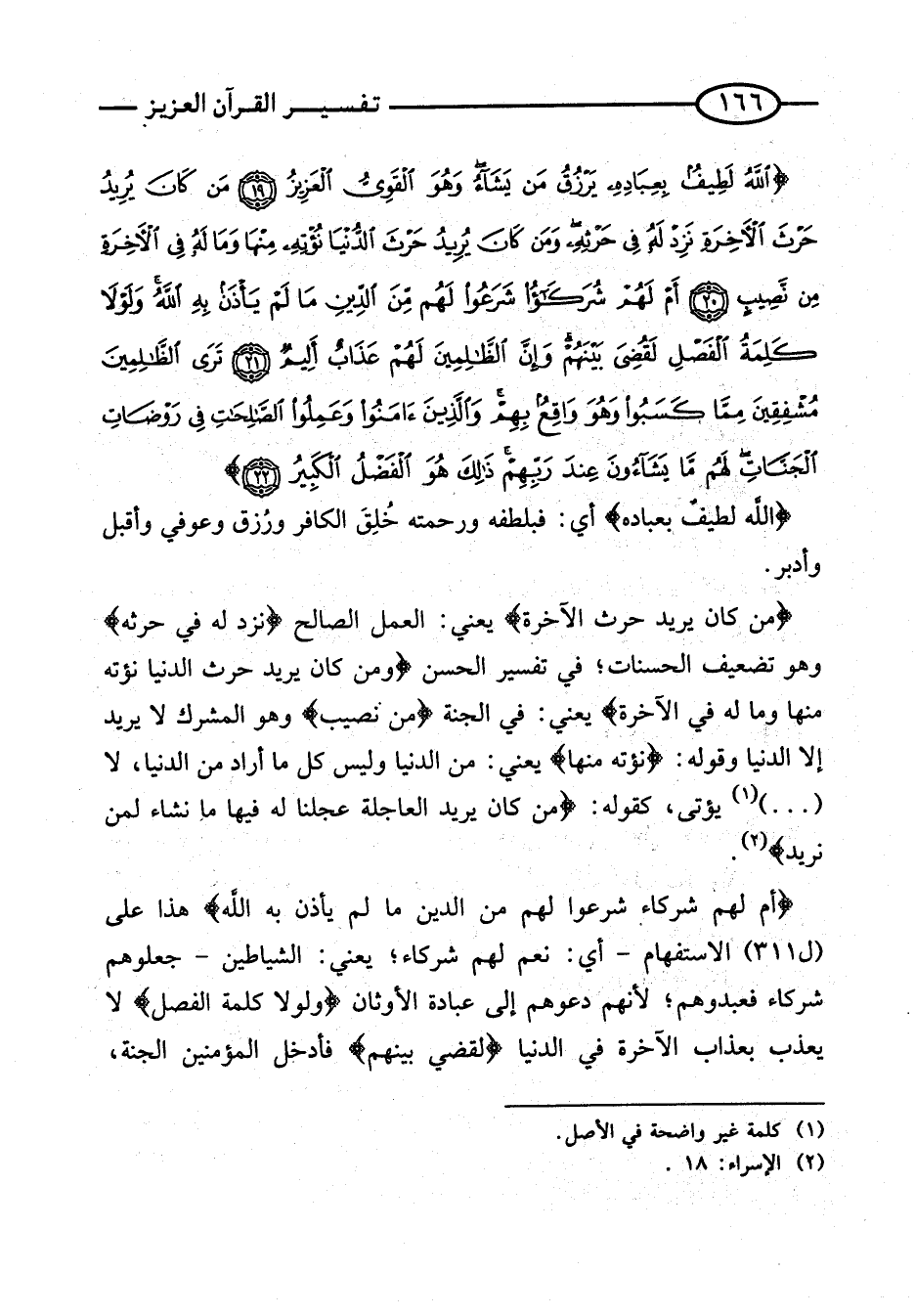تَفْسِير سُورَة الشورى من الْآيَة 19 إِلَى آيَة 22.