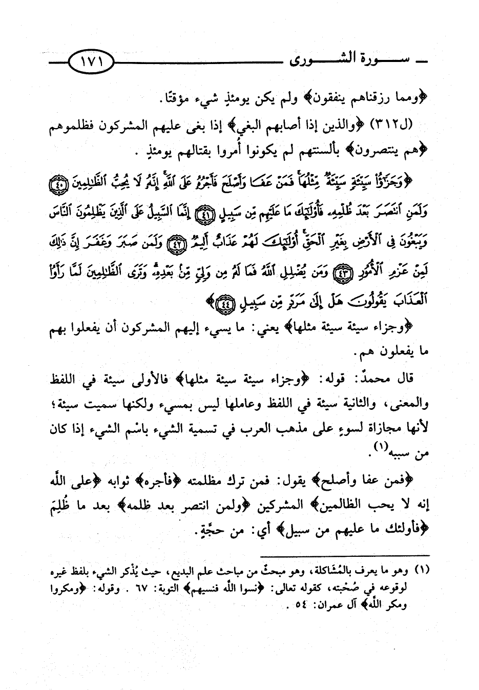 تَفْسِير سُورَة الشورى من الْآيَة 40 إِلَى آيَة 44.