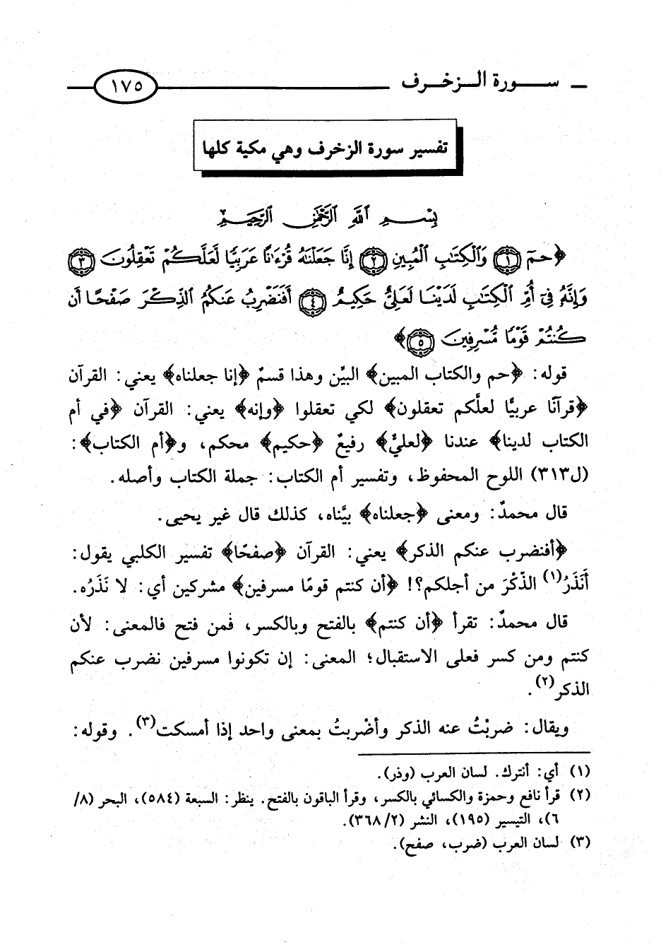 تَفْسِير سُورَة الزخرف وَهِي مَكِّيَّة كلهَا
