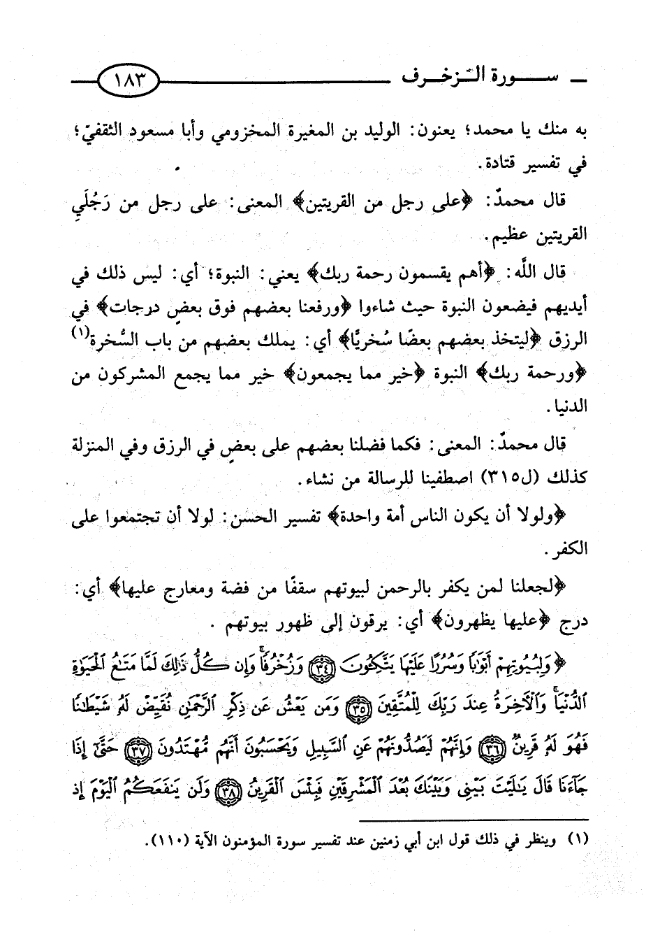 قَالَ محمدٌ: {عَلَى رَجُلٍ مِنَ القريتين} الْمَعْنى: على رجل من رَجُلَيِ القريتين عَظِيم.