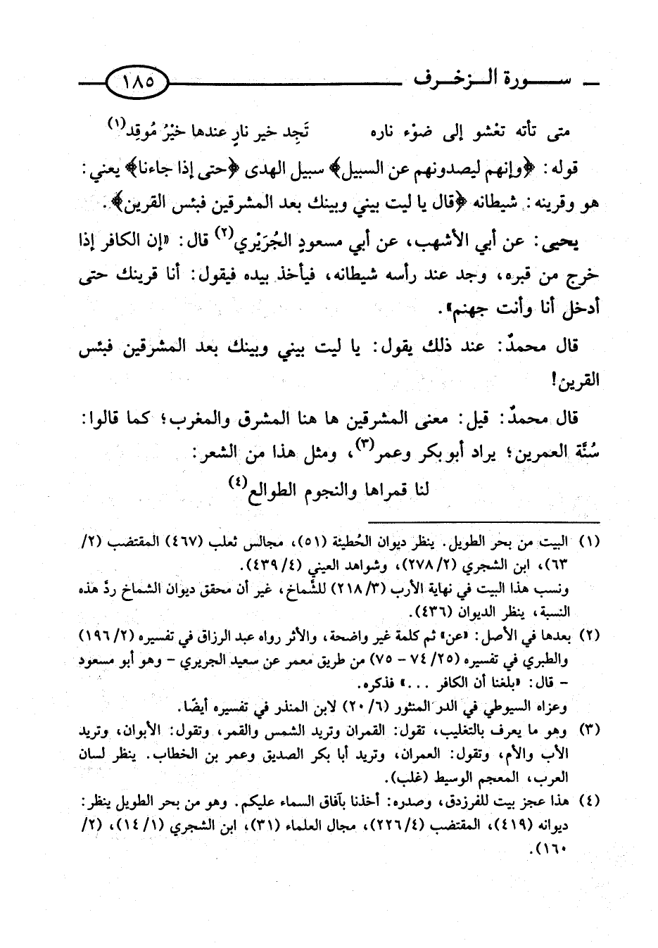 قَالَ محمدٌ: قيل: معنى المشرقين هَا هُنَا الْمشرق وَالْمغْرب؛ كَمَا قَالُوا: سُنَّة العمرين؛ يُرَاد أَبُو بكر وَعمر، وَمثل هَذَا من الشّعْر: