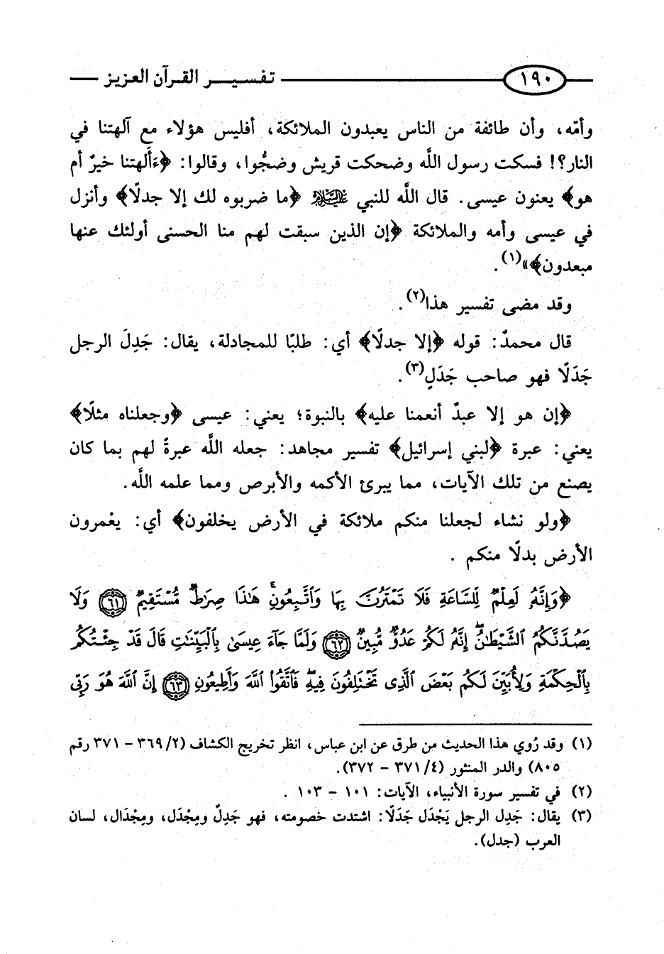 قَالَ اللَّه للنَّبِي صلى الله عَلَيْهِ وَسلم {مَا ضَرَبُوهُ لَكَ إِلَّا جدلا} وَأنزل فِي عِيسَى وَأمه وَالْمَلَائِكَة {إِنَّ الَّذِينَ سَبَقَتْ لَهُمْ مِنَّا الْحسنى أُولَئِكَ عَنْهَا مبعدون}.