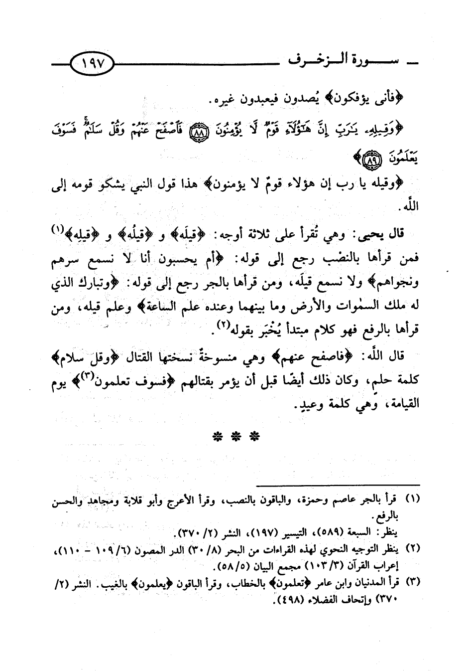 تَفْسِير سُورَة الزخرف من الْآيَة 88 إِلَى آيَة 89.