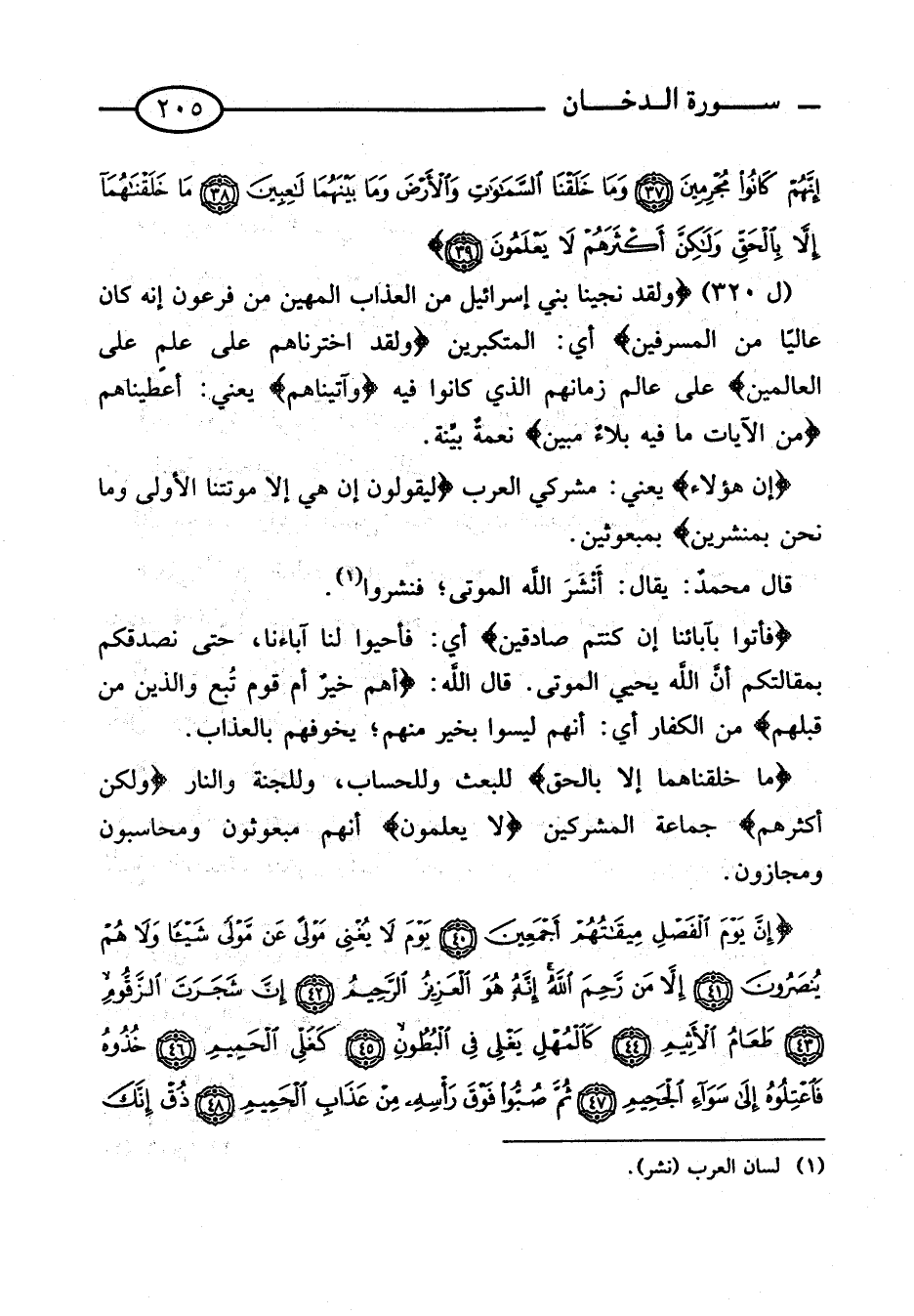 {مَا خلقناهما إِلَّا بِالْحَقِّ} للبعث وللحساب، وللجنة وَالنَّار {وَلَكِنَّ أَكْثَرهم} جمَاعَة الْمُشْركين {لَا يعلمُونَ} أَنهم مبعوثون ومحاسبون ومجازون.