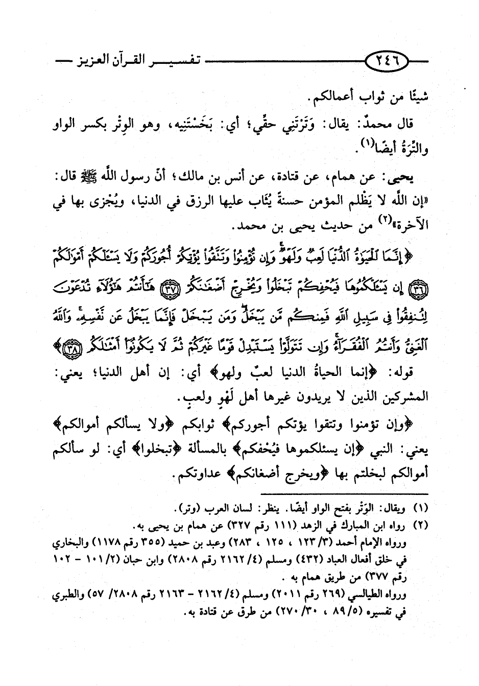 تَفْسِيرُ سُورَة مُحَمَّد من الْآيَة 36 إِلَى آيَة 38.