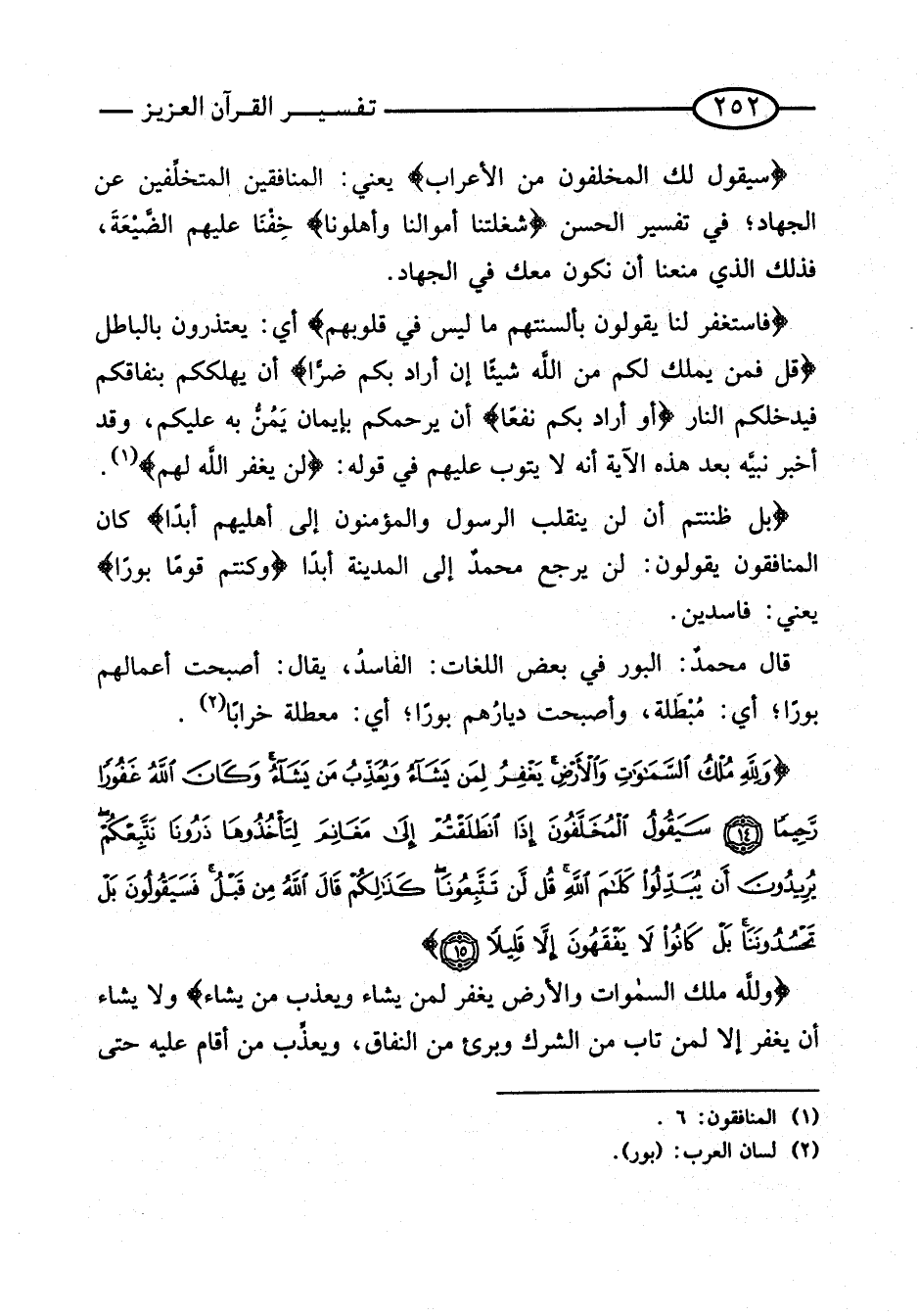 تَفْسِير سُورَة الْفَتْح من الْآيَة 14 إِلَى آيَة 15.