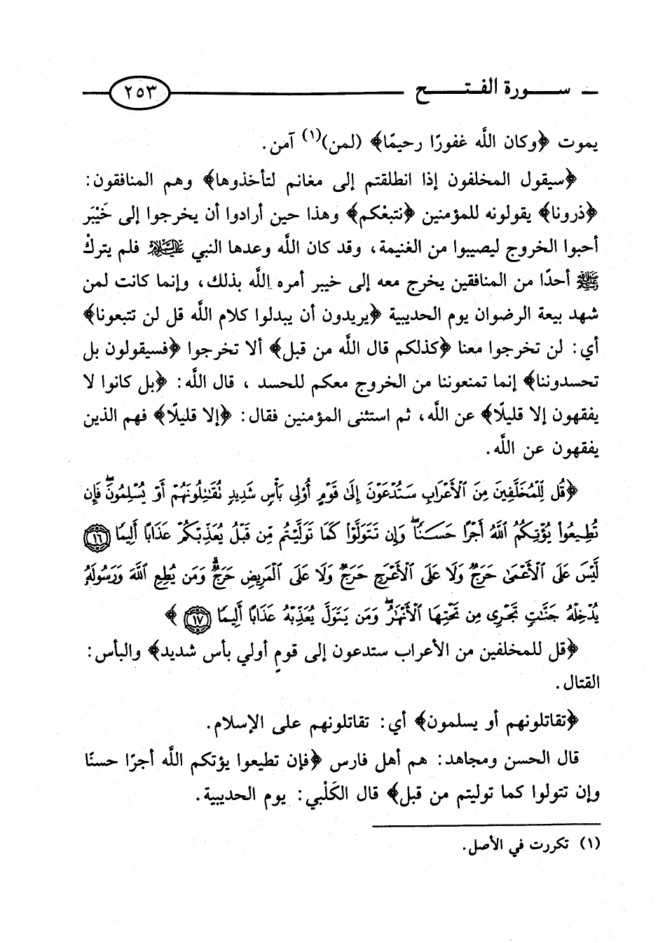تَفْسِير سُورَة الْفَتْح من الْآيَة 16 إِلَى آيَة 17.