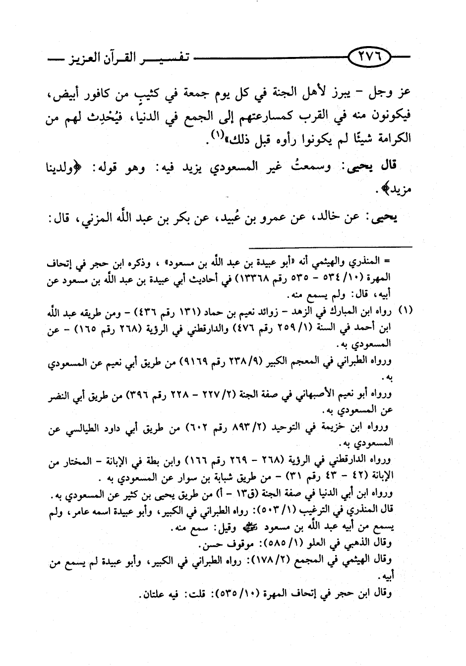 قَالَ يحيى: وسمعتُ غير المَسْعُودِيّ يزِيد فِيهِ: وَهُوَ قَوْله: {ولدينا مزِيد}.