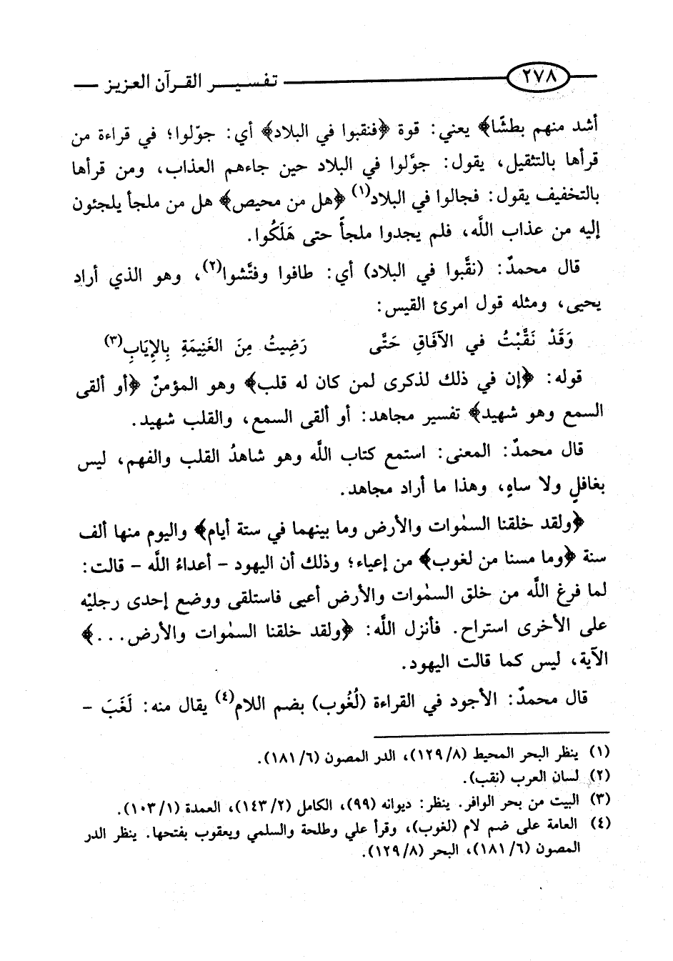 قَالَ محمدٌ: (نقبوا فِي الْبِلَاد) أَي: طافوا وفتَّشوا، وَهُوَ الَّذِي أَرَادَ يحيى، وَمثله قَول امْرِئ الْقَيْس: