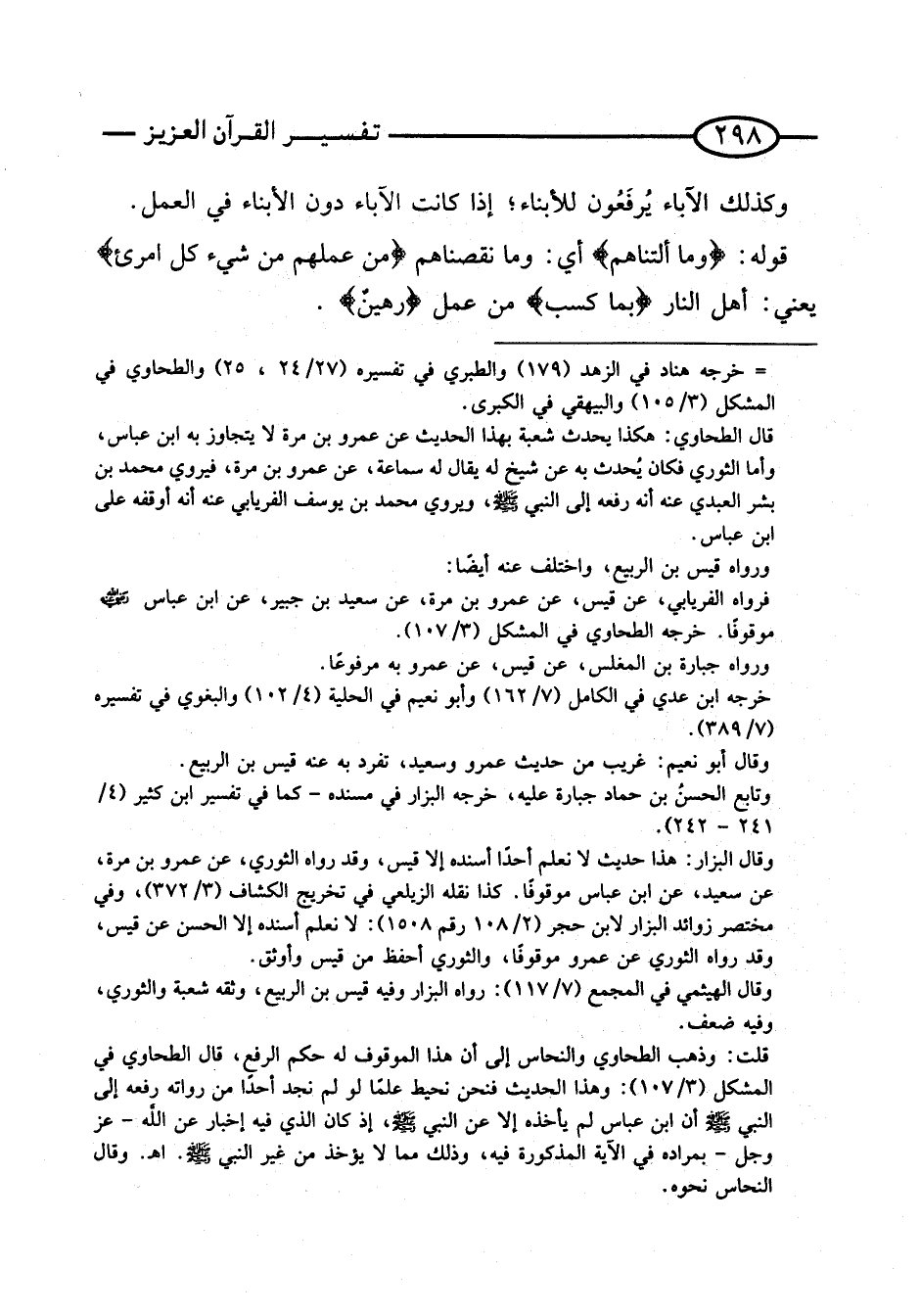 قَوْله: {وَمَا ألتناهم} أَي: وَمَا نقصناهم {مِّنْ عَمَلِهِم مِّن شَيْءٍ كُلُّ امْرِئٍ} يَعْنِي: أهل النَّار {بِمَا كَسَبَ} من عمل {رَهِينٌ}.